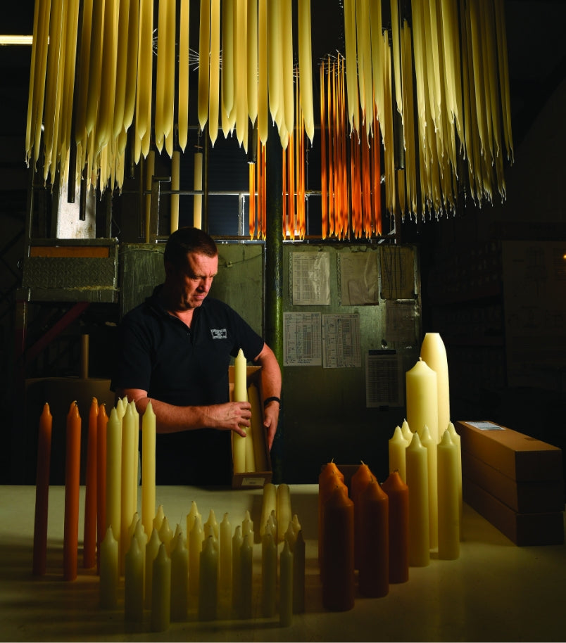 Our factory is based in the heart of Wiltshire countryside. We still use traditional methods to make our beeswax candles, which date back to medieval times. While we have been continually refining our wax blends and ingredients, many of our production methods remain the same. The dipping for each candle is a slow process and can take many days, but there is no other method to create tapered candles with such a beautifully smooth finish. Our candles are then hand-polished and checked for our high standards of quality, before being carefully wrapped for delivery.